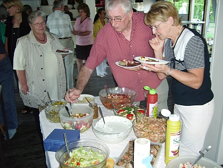Einen vergnüglichen Abend verbrachten die Mitglieder des Seeadler-Chores mit ihren Partner/innen im Clubraum des DVG in Bad Salzuflen an den Bexter Breden. Für das leibliche Wohl mit frischen Salaten, gegrillten Würstchen und kühlem Bier hatten die Chor-Mitglieder selbst bestens gesorgt. Aber auch humorige Vorträge und lustige Lieder, begleitet von den bewährten Akkordeonspielerinnen Margot und Heike, verkürzten den Abend. Eine echte Überraschung war das Mundharmonika-Trio, das einige Musikstücke mit großem Engagement vortrug. Als dann zu später Stunde spontan auch noch das Tanzbein geschwungen wurde, waren alle Wünsche des Festausschusses in Erfüllung gegangen.